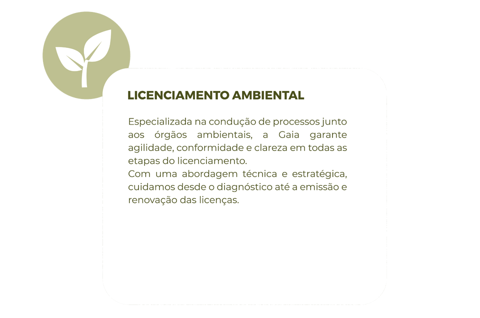 Com atuação pautada na transparência, ética e eficiência, a Gaia oferece um atendimento personalizado, conectando empresas, órgãos ambientais e a sociedade em torno de um mesmo propósito: crescer com sustentabilidade.